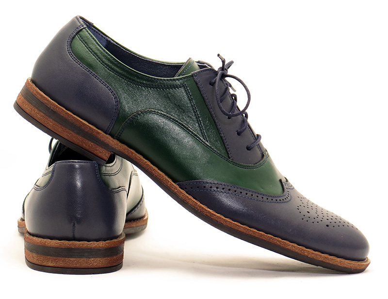 Granatowo-zielone brogsy męskie MODINI – unikatowe spektatory z charakterem